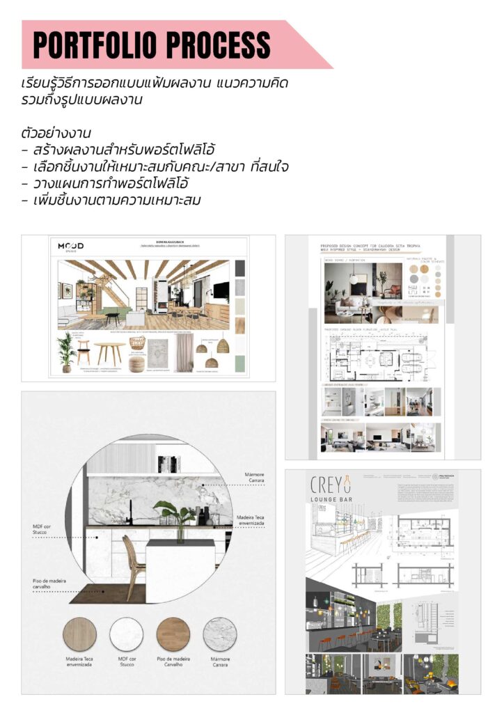 คอร์สเรียนออกแบบภายใน ที่สตูดิโอ จะโฟกัสไปที่การฝึก Skill สร้างผลงาน เพื่อทำเป็น Portfolio