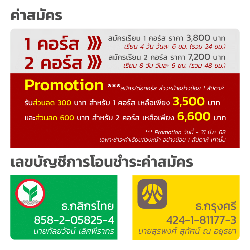 สมัครก่อนเปิดคอร์ส 1 สัปดาห์ ลด 300 บาท